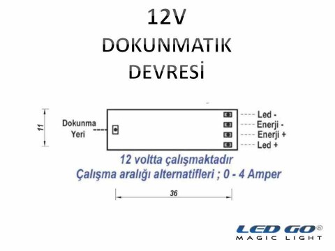 DOKUNMATIK DEVRESİ-12V-ULTRA SLIMMuhtelif aydınlatma çözümlerinde kolay ve pratik bir çözüm aracıdır.Şerit led ,ledbar ile uyumlu4A'a kadar desteklerKolay açma kapama için dokunmatik sistemLed Kanal profilleri içine uyacak ebatlardaSık ve yaratıcı tasarımlar için Ürün Modeli : Led Go Do..
